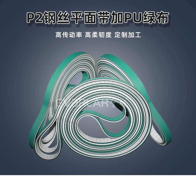 產(chǎn)品名稱:P2鋼絲平面帶加PU綠布