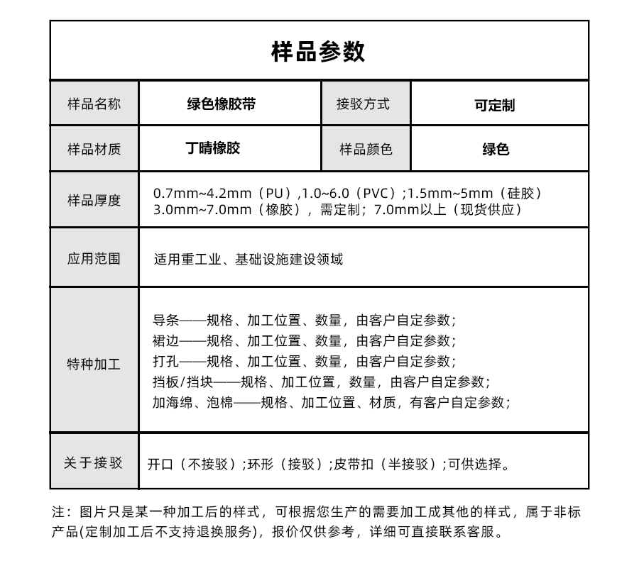 樣品名稱 | 綠色橡膠帶 | 加工方式 | 定制 |