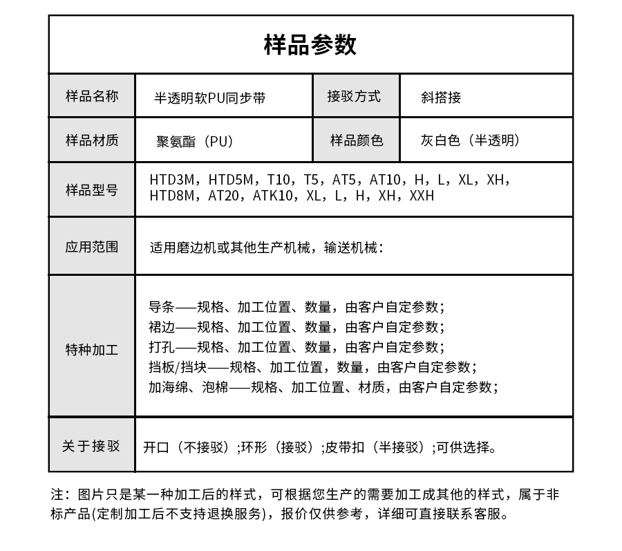 • 產品名稱:半透明軟PU同步帶磨邊機同步帶定制