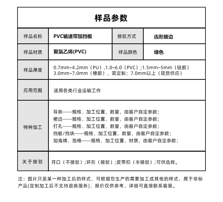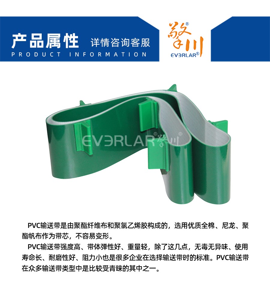 • 產品名稱:擎川everlar定制綠色加擋板PVC輸送帶
