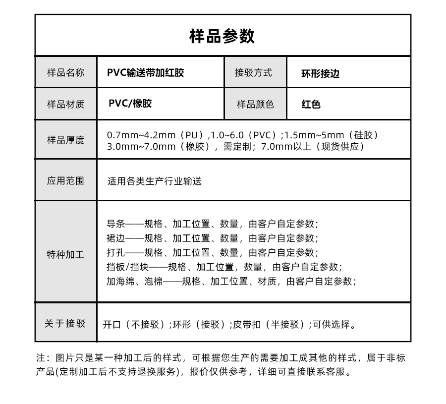 • 產品名稱:擎川everlar加紅膠PVC輸送帶食品輸送帶
