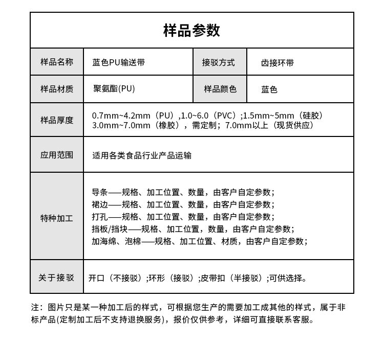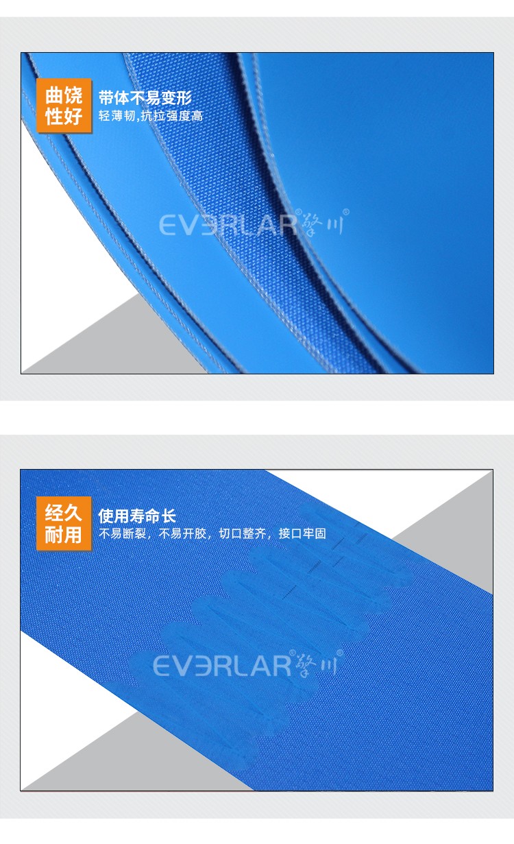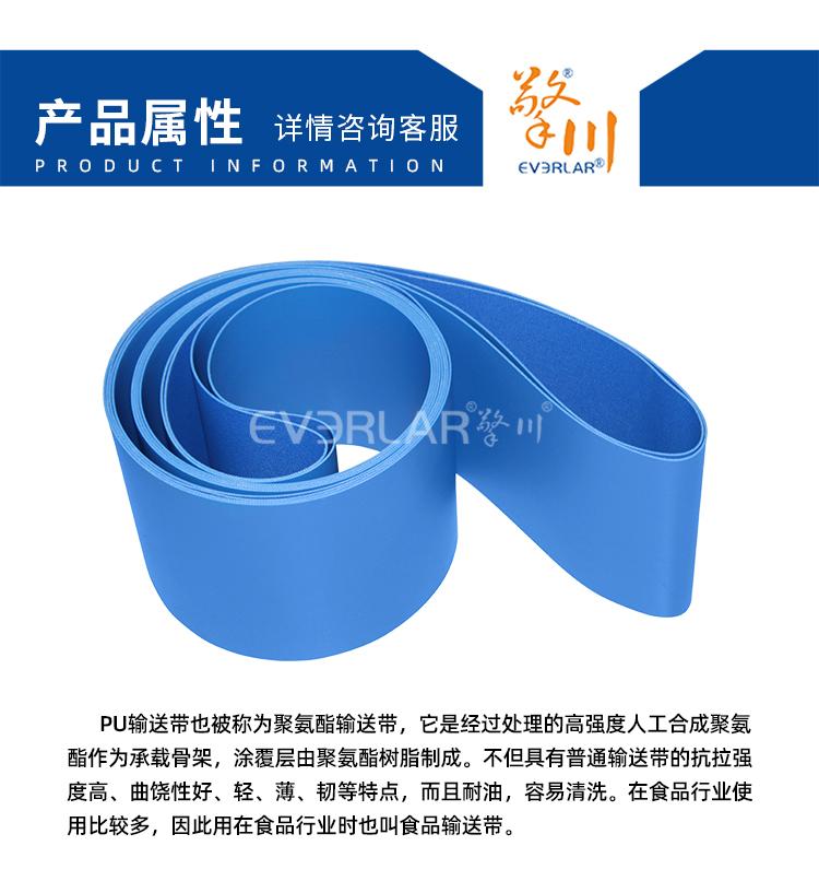 • 產品名稱:藍色PU輸送帶擎川食品輸送帶工業皮帶加工