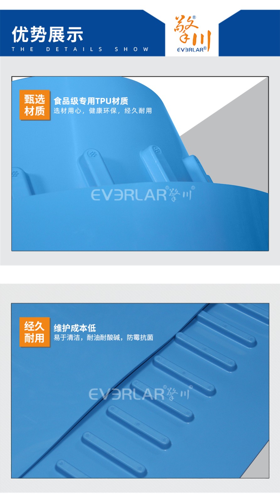 • 耐化學腐蝕、光滑抗粘、耐臟、易于清洗耐高溫,加裝導條提升編送能力。