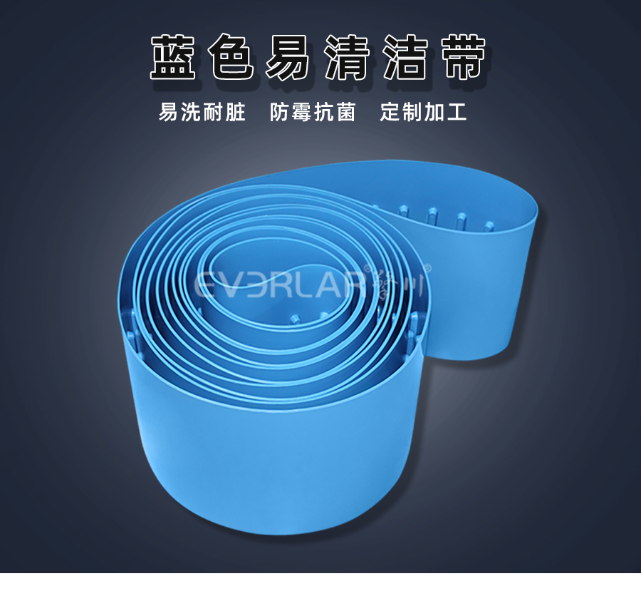 • 藍色易清潔帶加雙導條肉類加工輸送機械設備