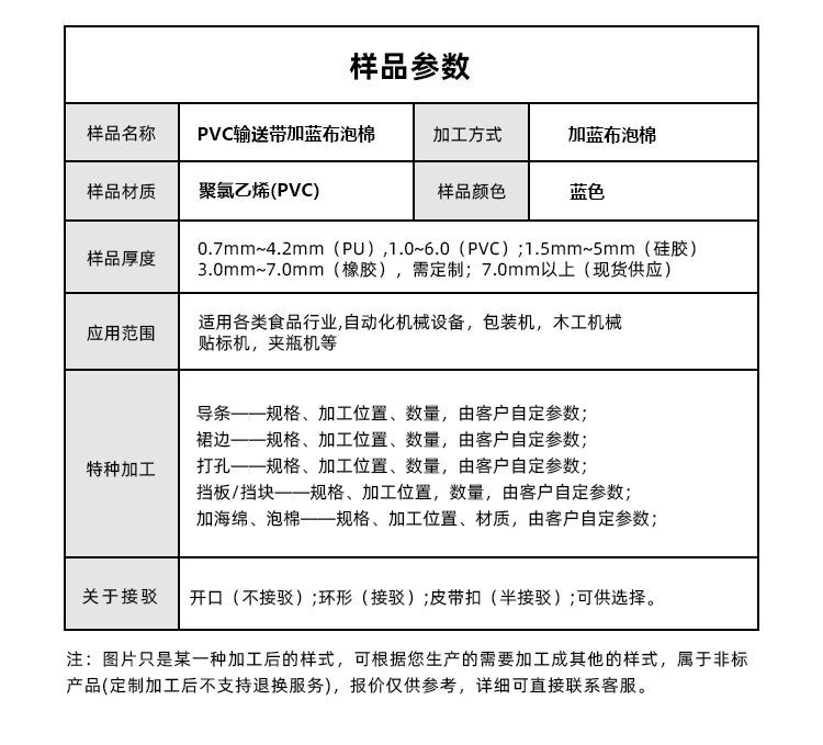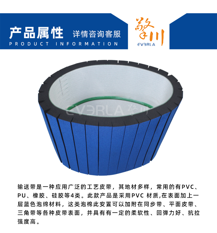 • 產(chǎn)品名稱:藍色加泡棉PVC輸送帶擎川工業(yè)皮帶定制