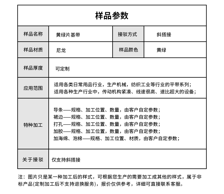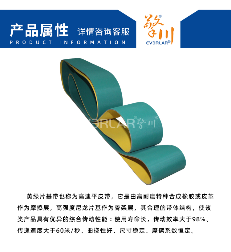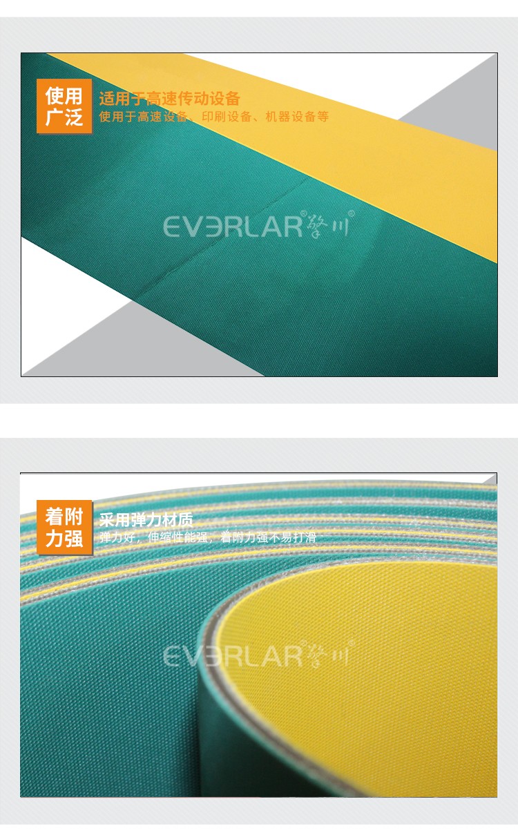 • 產(chǎn)品名稱:黃綠片基帶食品輸送帶定制擎川everlar工業(yè)皮帶