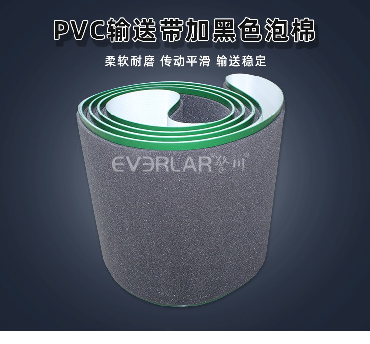 • 產品名稱:綠色PVC輸送帶加黑色泡棉耐磨耐腐蝕食品加工機械工業皮帶定制