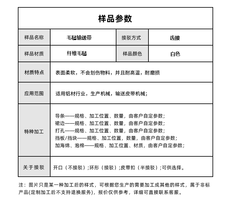 • 產品名稱:凱夫拉毛氈輸送帶耐磨耐高溫耐腐蝕工業皮帶定制