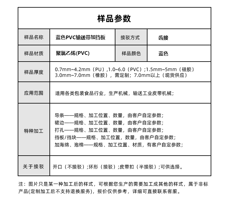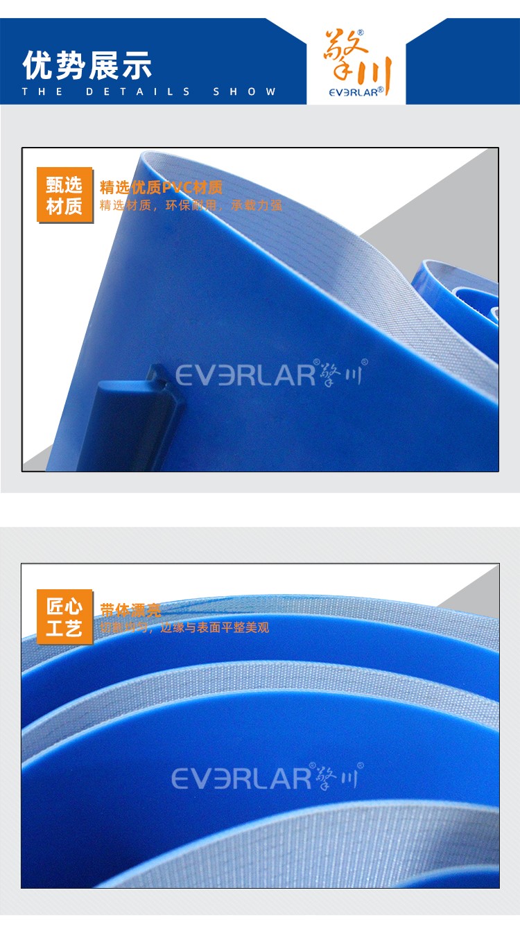 • 產品名稱:藍色PVC輸送帶加擋板耐磨耐油耐腐蝕工業皮帶定制