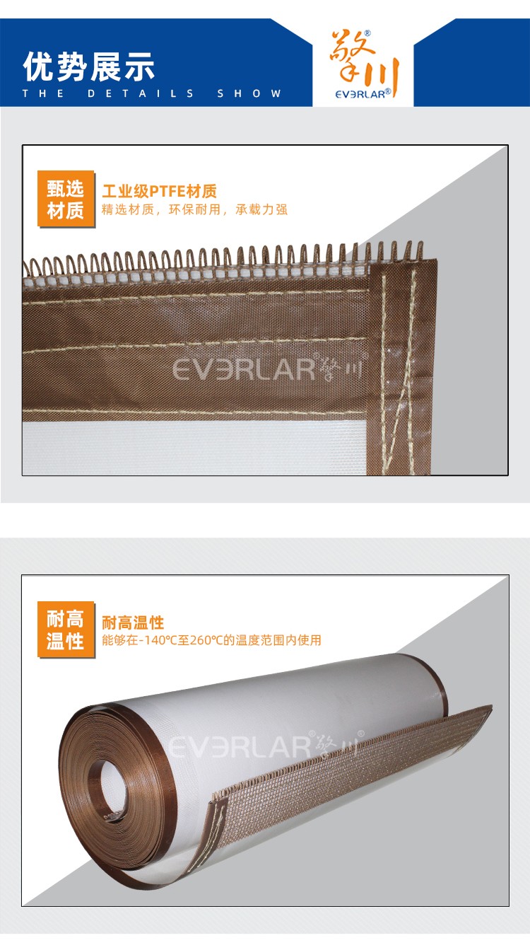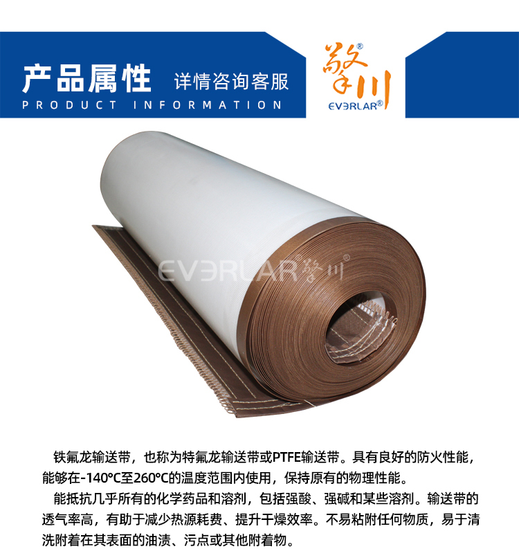 • 產品名稱:鐵氟龍輸送帶耐磨耐腐蝕耐高溫工業皮帶定制