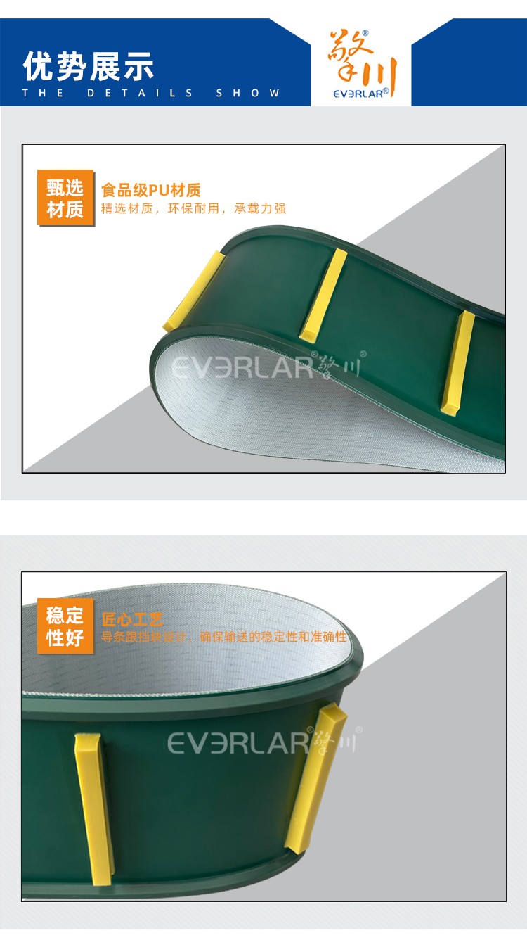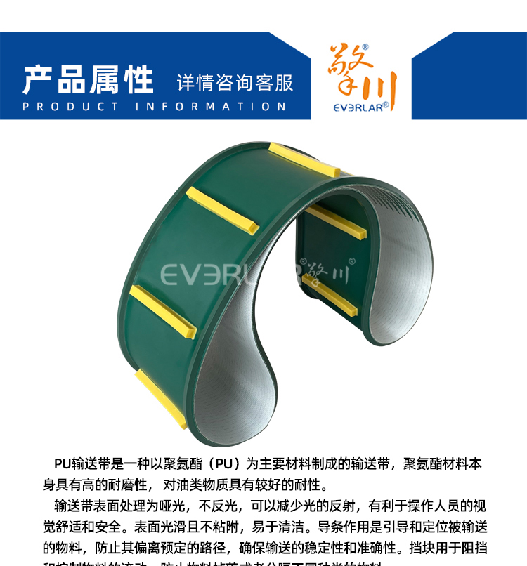 • 產品名稱:啞光PU輸送帶加導條擋板耐磨耐腐蝕耐切割工業皮帶定制