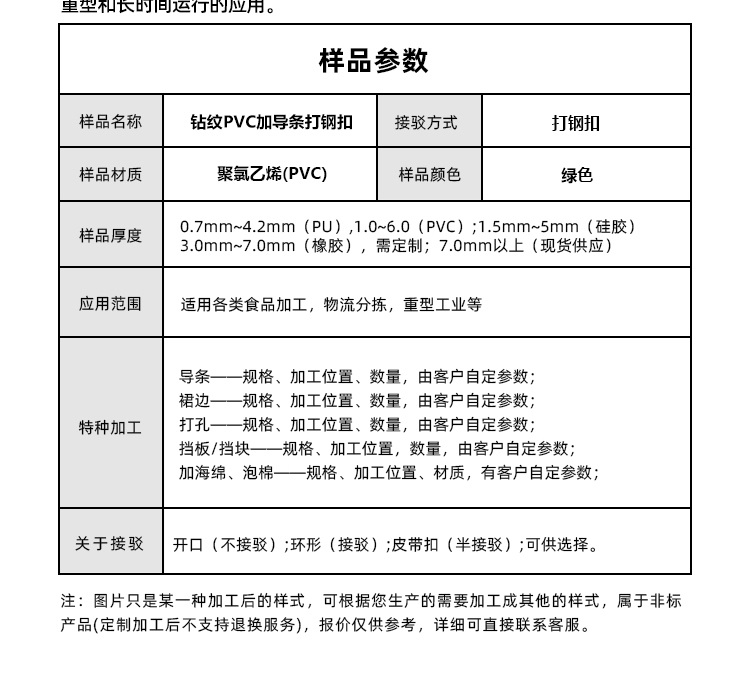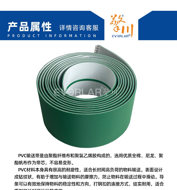 • 產品名稱:鉆石PVC加導條打鋼扣耐磨防靜電強度高工業皮帶