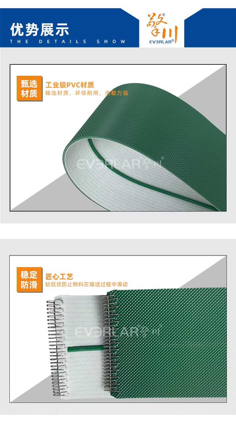• 鉆石PVC加導條打鋼扣耐磨防靜電強度高工業皮帶