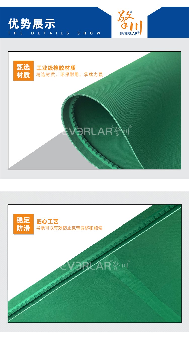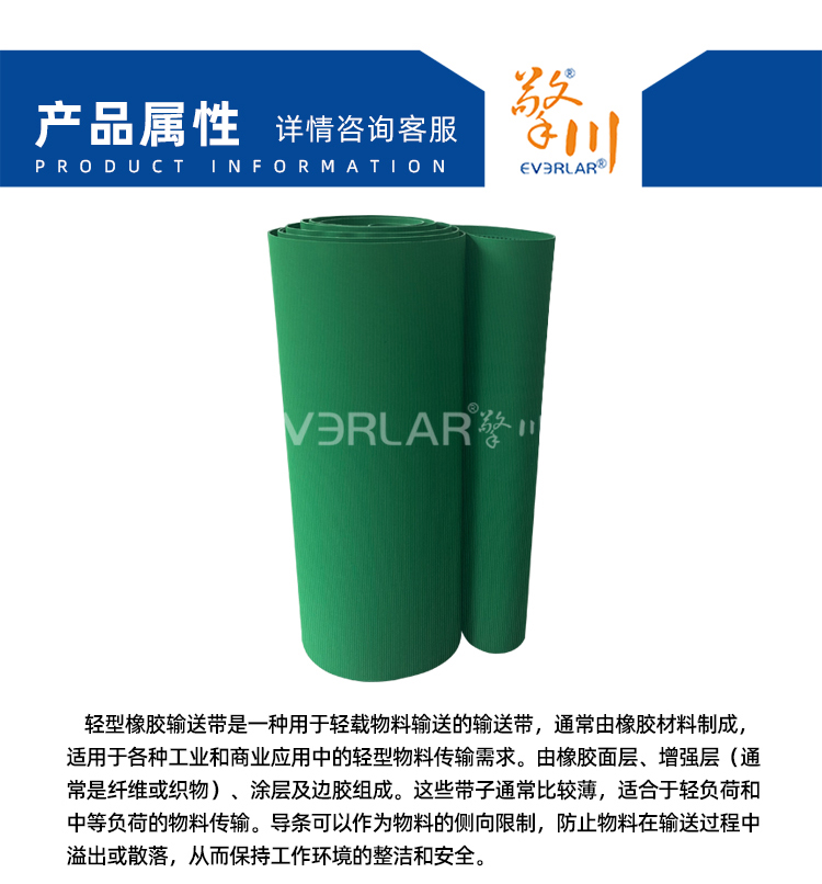 • 產品名稱:輕型橡膠輸送帶加導條耐磨平穩抗拉強度工業皮帶