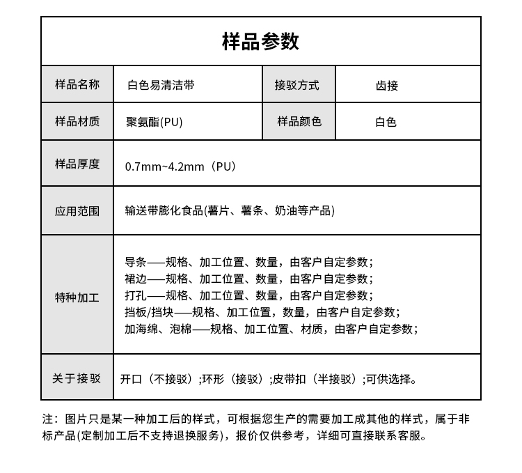 • 產(chǎn)品名稱:白色易清潔帶耐磨易清潔耐腐蝕工業(yè)皮帶