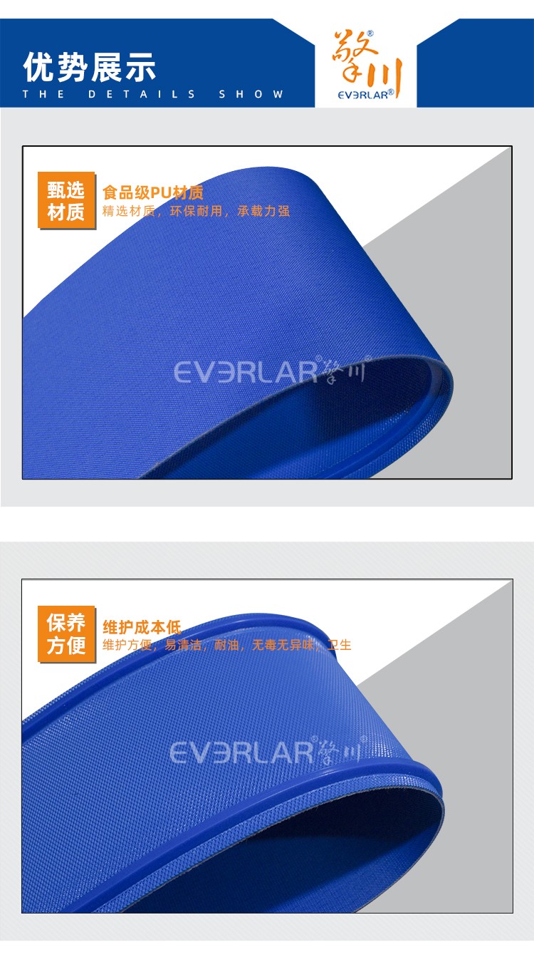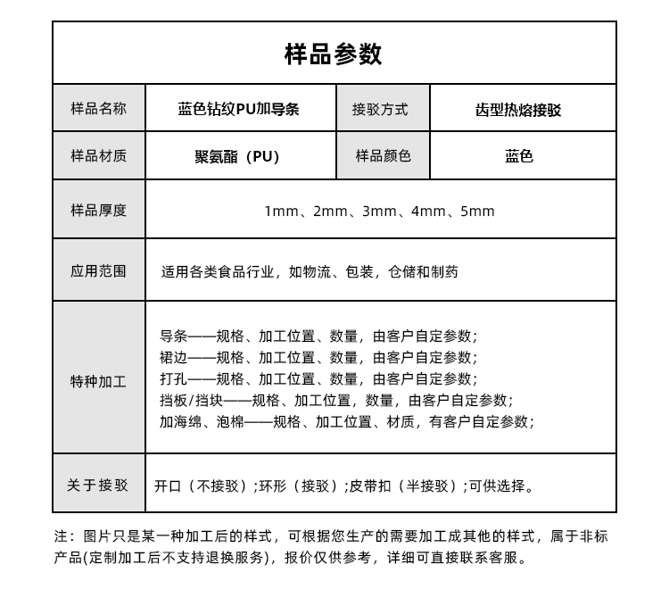 產(chǎn)品名稱:藍(lán)色PU鉆紋加導(dǎo)條耐磨防滑耐腐蝕工業(yè)皮帶