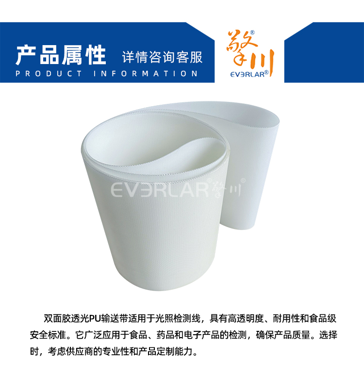 • 產品名稱:雙面膠透光PU輸送帶耐油耐腐蝕易清潔工業皮帶