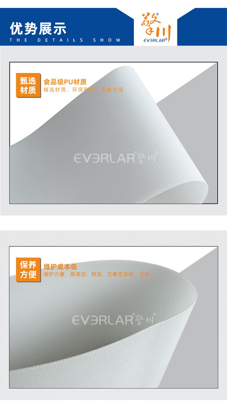 • 雙面膠透光PU輸送帶耐油耐腐蝕易清潔工業皮帶