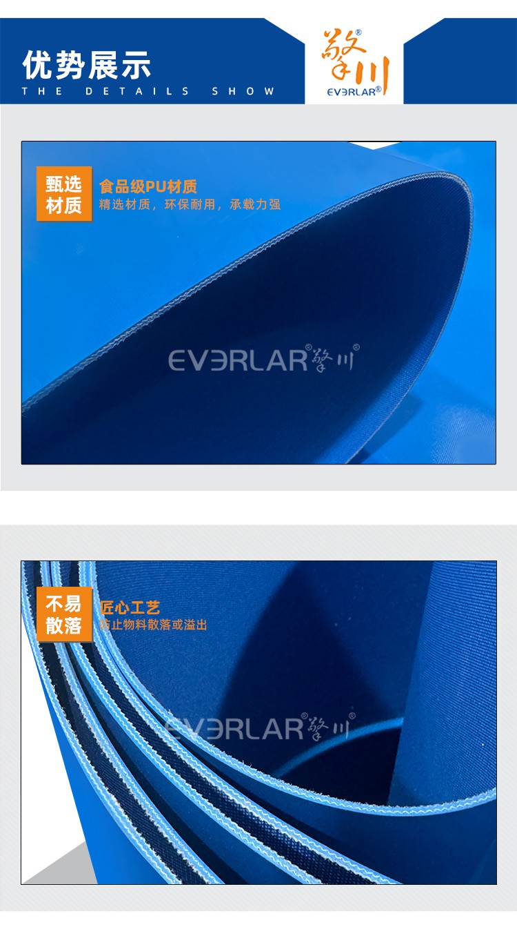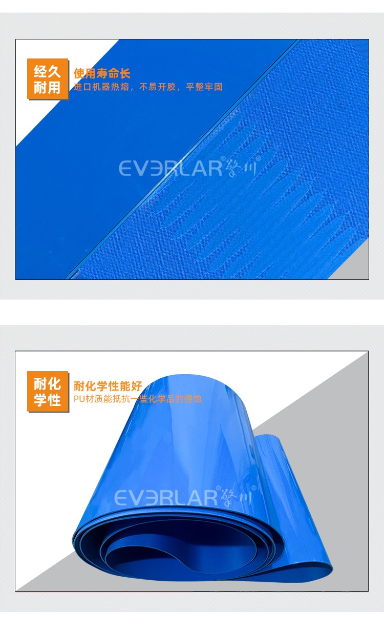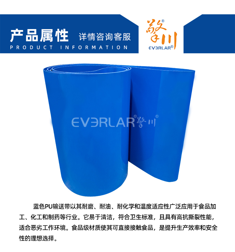 • 產品名稱:藍色PU輸送帶加導條耐磨耐油耐腐蝕工業皮帶定制