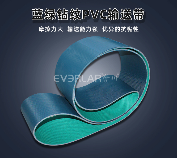 • 藍綠鉆紋PVC輸送帶耐溫防靜電易清潔工業皮帶