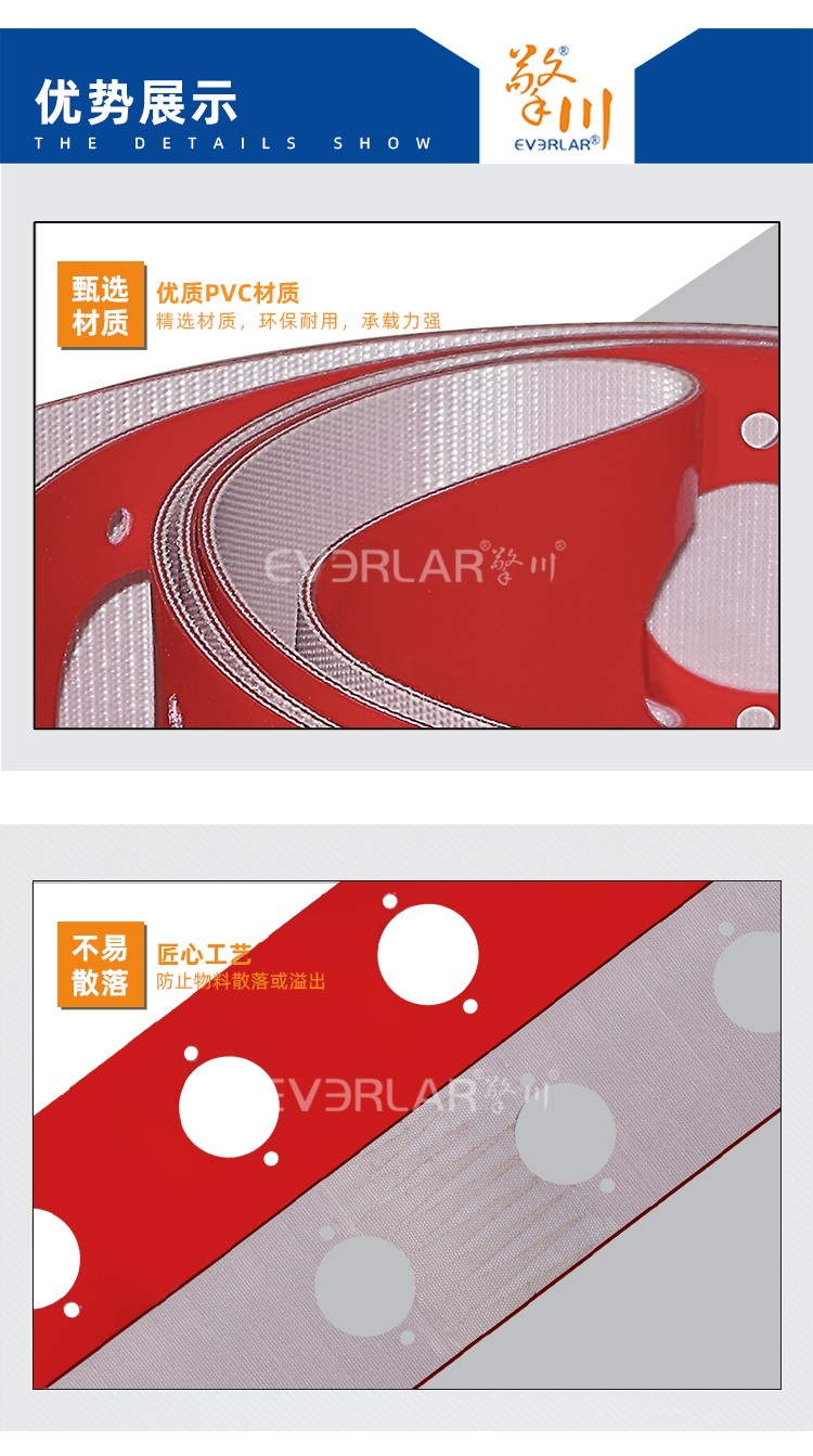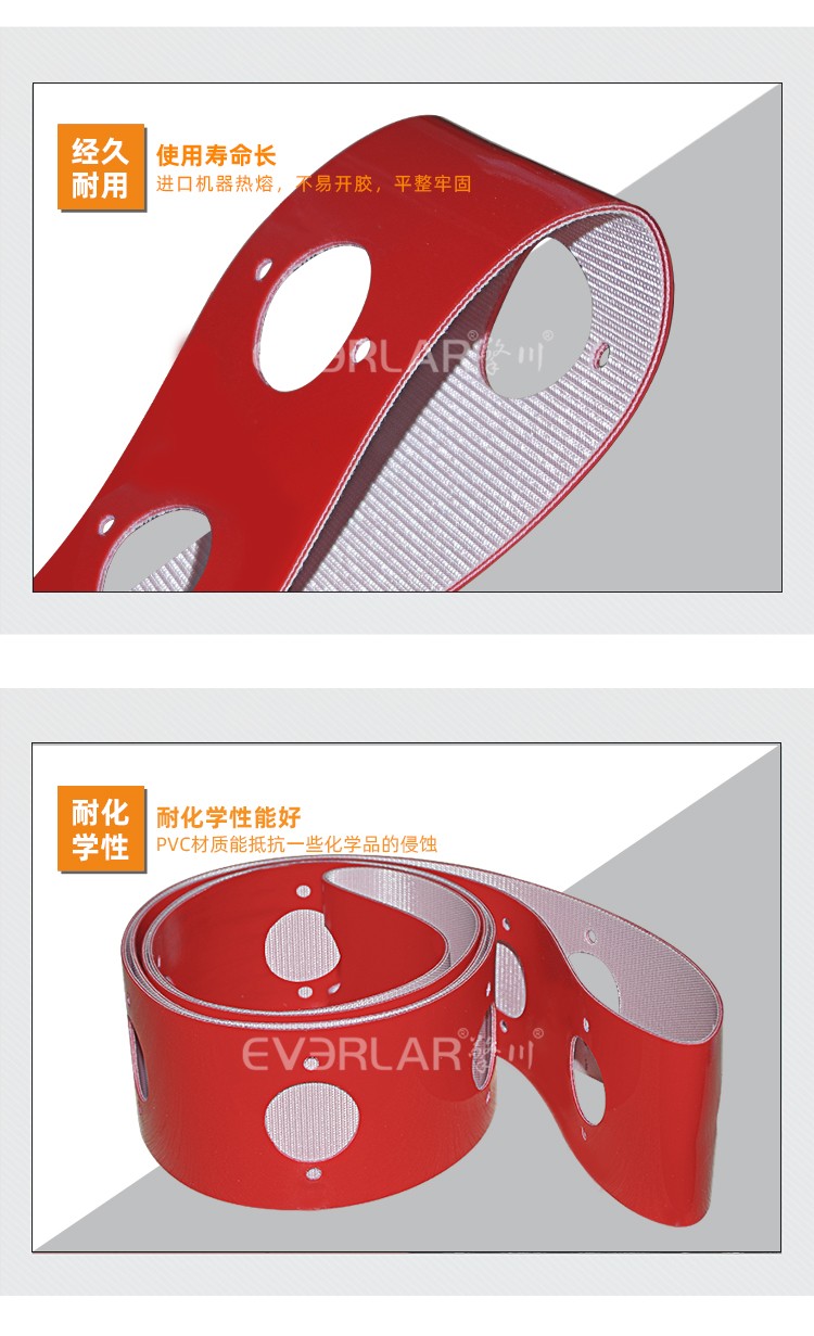 • 紅色pvc輸送帶加打孔耐磨降噪防靜電工業皮帶