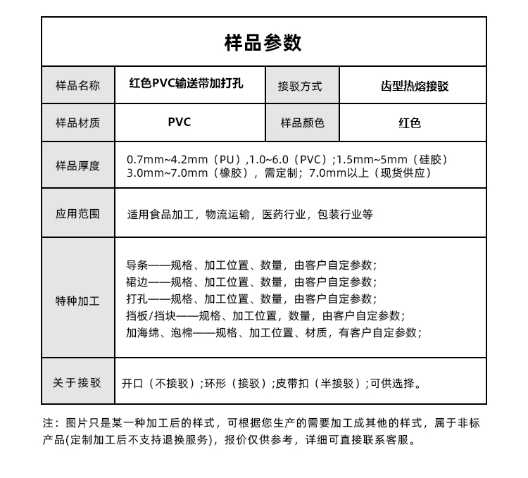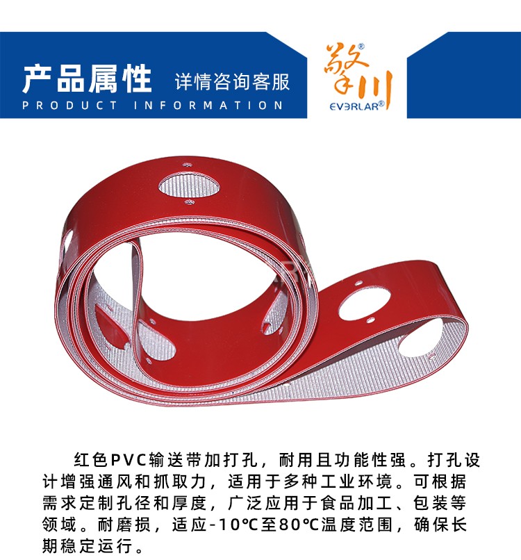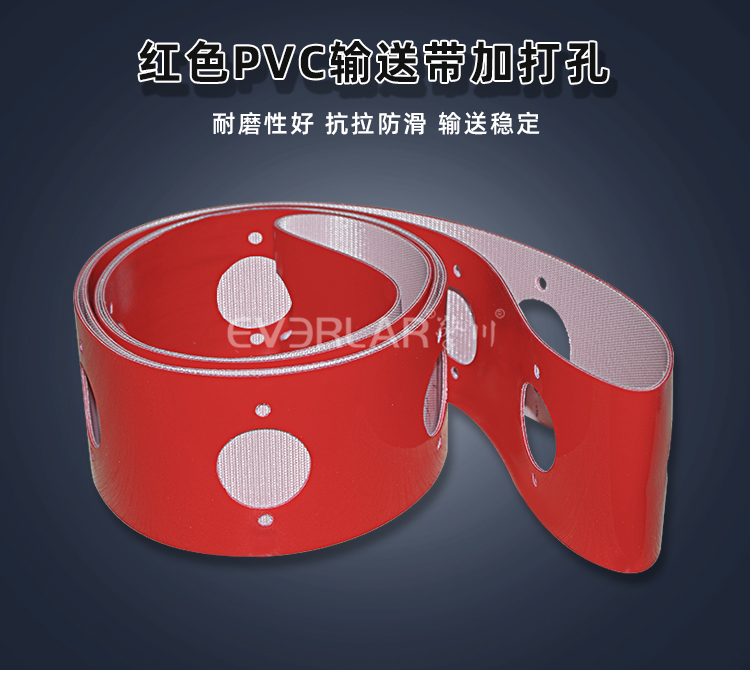 • 產品名稱:紅色pvc輸送帶加打孔耐磨降噪防靜電工業皮帶