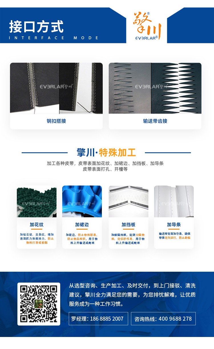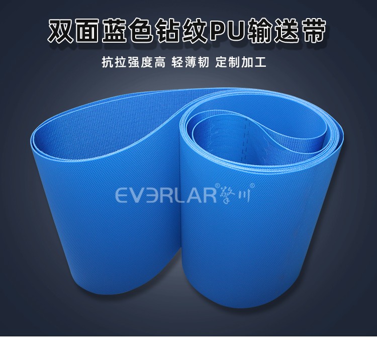 • 產品名稱:雙面藍色鉆紋PU輸送帶耐磨耐油食品級工業皮帶定制
