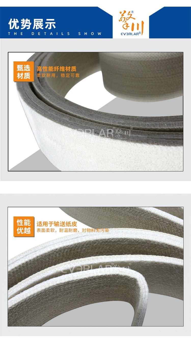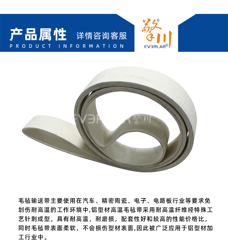 • 產品名稱:凱夫拉毛氈輸送帶耐磨耐高溫耐腐蝕工業皮帶定制