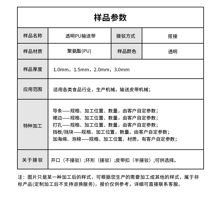 • 產品名稱:透明PU輸送帶耐磨易清潔耐腐蝕工業皮帶定制