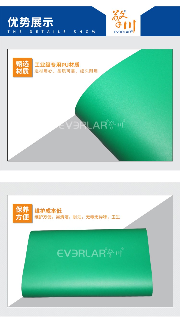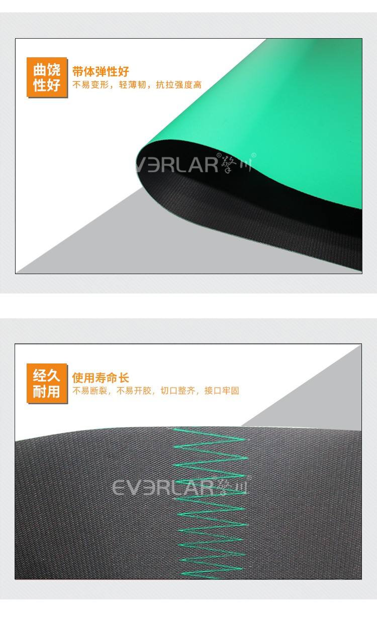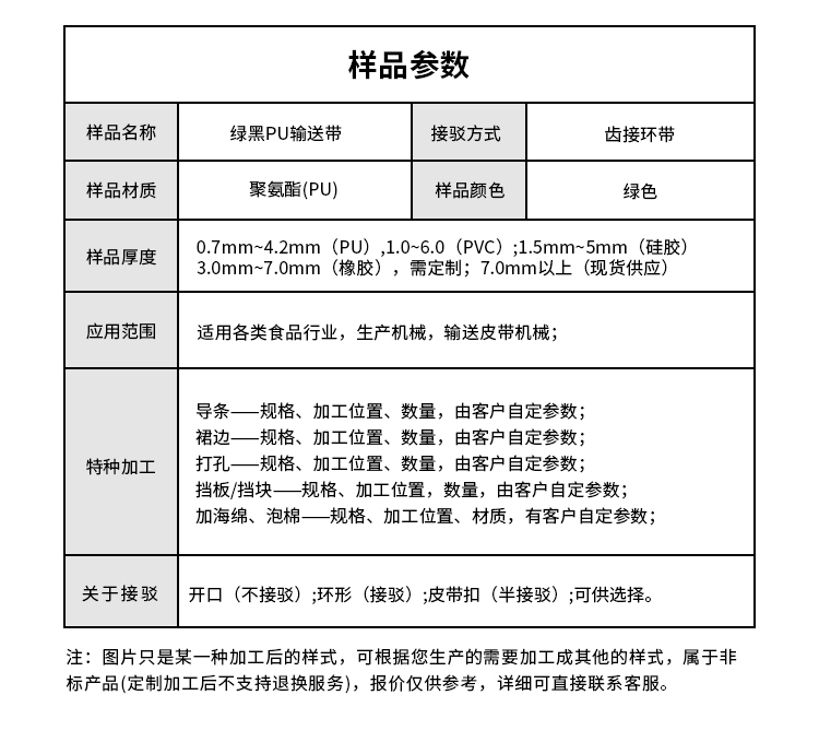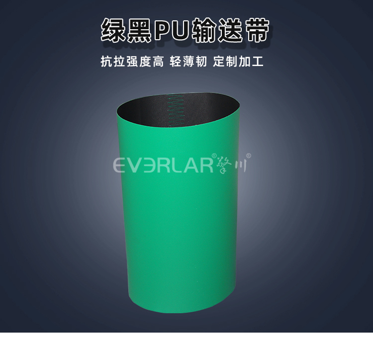 • 產品名稱:綠黑PU輸送帶耐磨耐切割耐腐蝕工業皮帶定制