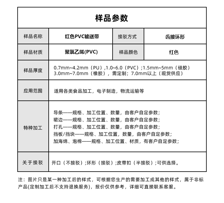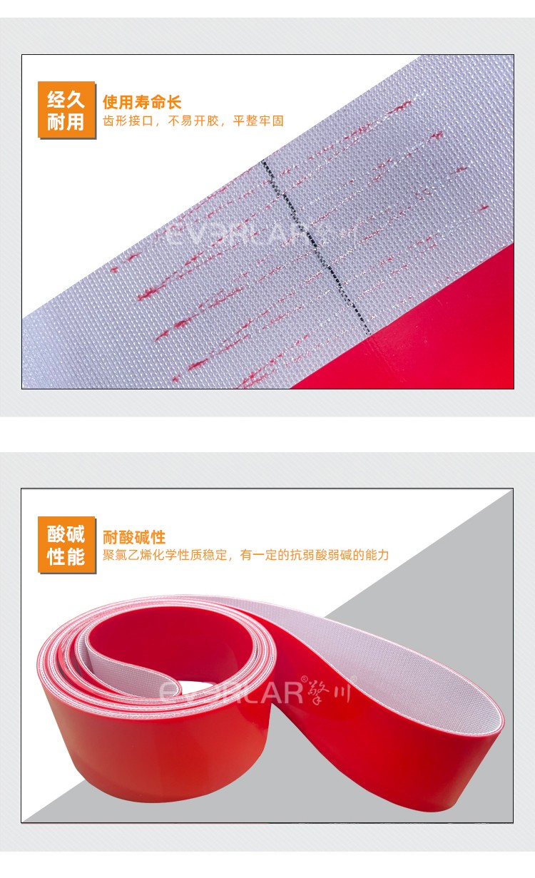 • 產品名稱:紅色PVC輸送帶耐磨耐腐蝕食品級工業皮帶定制
