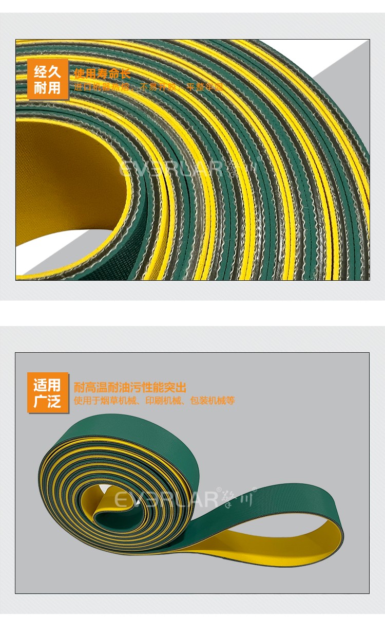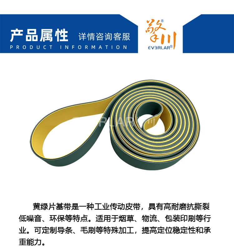 • 黃綠片基帶抗拉防滑印刷紡織行業(yè)高速傳動平皮帶工業(yè)廠家定制