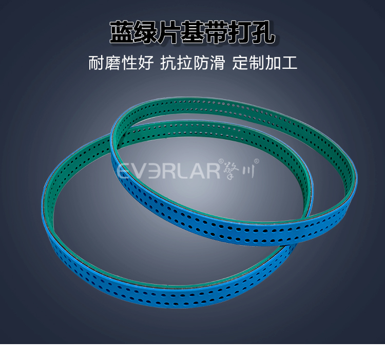 • 產品名稱:藍綠片基帶打孔耐磨防滑物流包裝行業分揀倉儲傳動平皮帶擎川定制