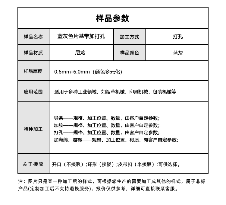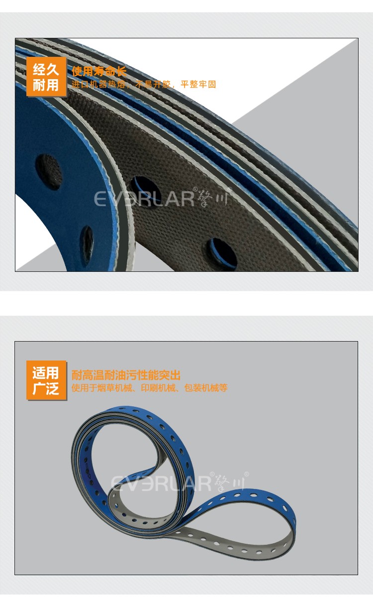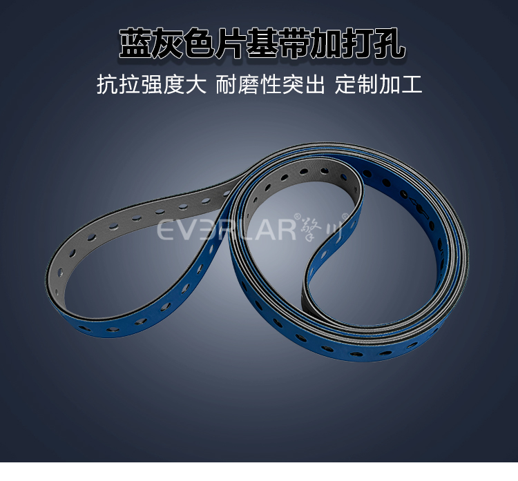 產(chǎn)品名稱:藍(lán)灰片基帶加打孔耐磨抗拉伸印刷紡織生產(chǎn)線紙張布料元件傳送平皮帶